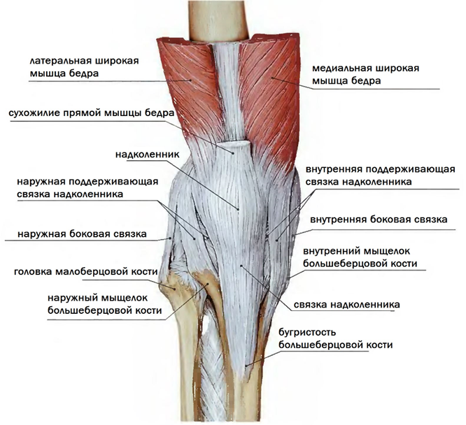 Первая часть причин боли чаще всего связана с развитием воспалений сухожилий и сухожильных сумок, находящихся рядом с суставом. Эти состояния называются тендинитами и бурситами, и для их лечения требуются корректный диагноз, модификация нагрузки и назначение адекватного физическому состоянию пациента комплекса упражнений. Такие упражнения должны всегда подбираться индивидуально и учитывать образ жизни и рабочий график пациента, а также имеющиеся факторы риска (лишний вес, плоскостопие, варусная или вальгусная установка коленных суставов и т.д.). Наиболее часто воспаляются сухожилия «гусиной лапки», собственной связки надколенника, сухожилие четырёхглавой мышцы бедра и илиотибиального тракта.