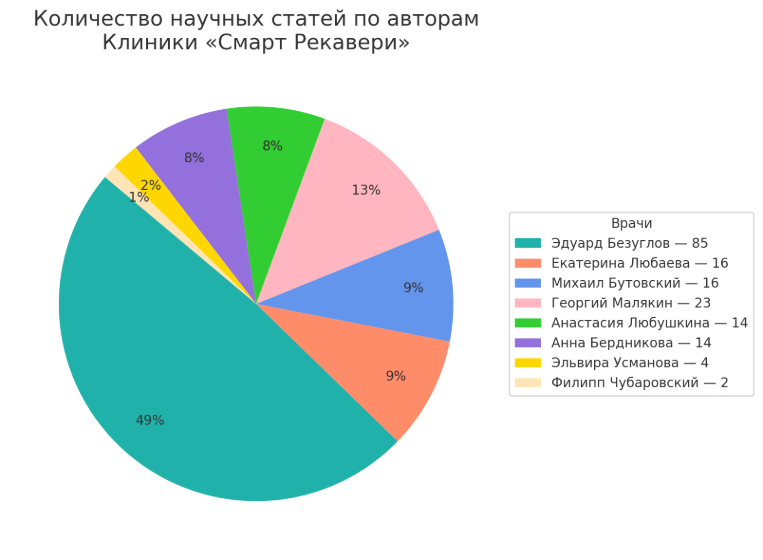 Публикационная активность врачей клиники «Смарт Рекавери» (по данным сайта scopus.com)